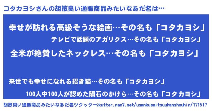 | 意味不明あだ名 | 『とにかく怪しいコタカヨシ』 |
