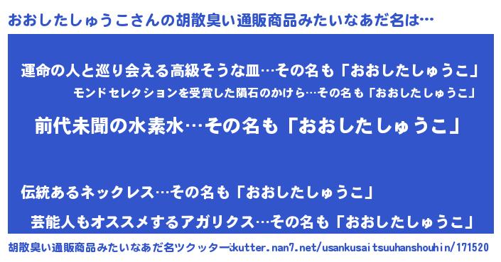 | 意味不明あだ名 | 『永久保存おおしたしゅうこ』 |