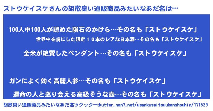 | 女子向けラノベタイトル風あだ名 | 『ストウケイスケ様がみてる』 |