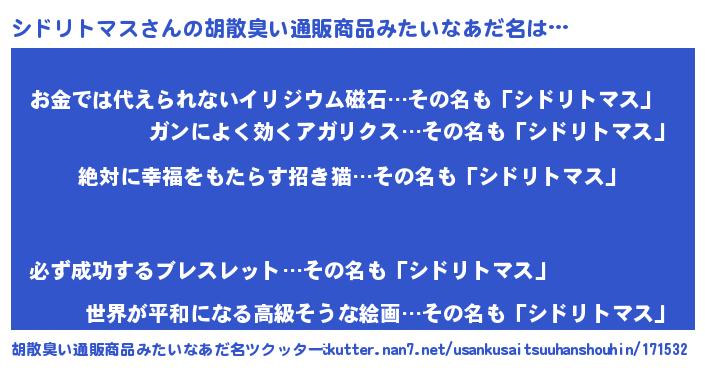 | 意味不明あだ名 | 『永久保存シドリトマス』 |