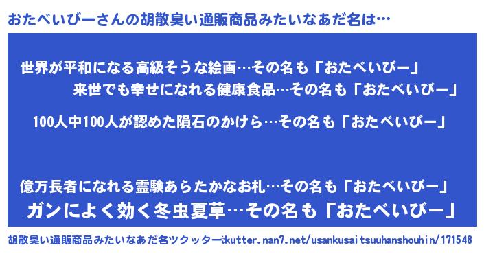 | ヒーロー風カッコイイあだ名 | 『友情の使者おたべいびー』 |