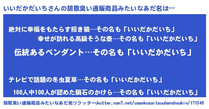 | ヘコむあだ名 | 『いいっぺ』『いいだかだいち(笑)』 |