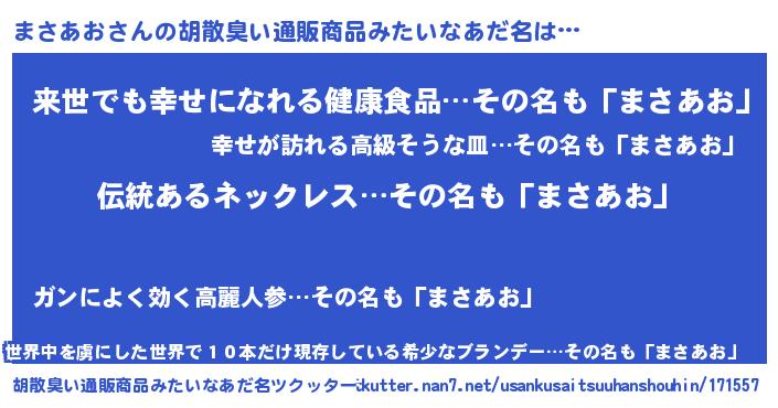 | 意味不明あだ名 | 『とにかく怪しいまさあお』 |