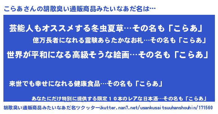 | ヘコむあだ名 | 『なまこ酢』『こらっふぃ~』 |