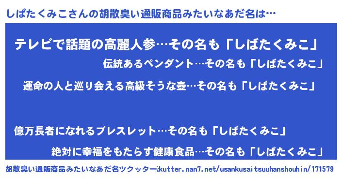 | 意味不明あだ名 | 『しばたくみこフォーエバー』 |