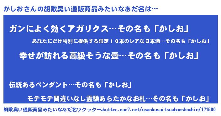 | 意味不明あだ名 | 『かしおフォーエバー』『自称かしお』 |