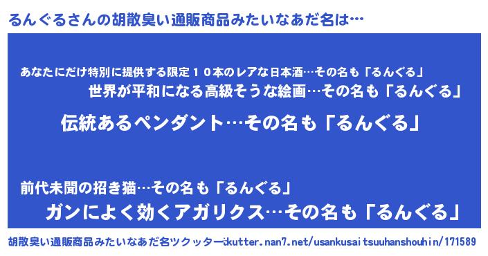 | 意味不明あだ名 | 『とにかく怪しいるんぐる』 |