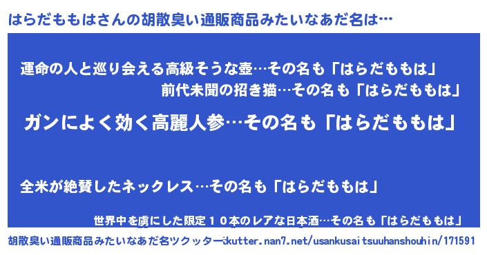 | 意味不明あだ名 | 『自称はらだももは』 |