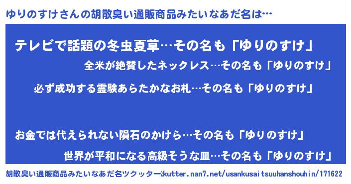 | 意味不明あだ名 | 『ペロリンゆりのすけ』『自称ゆりのすけ』 |