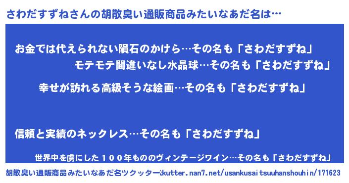 | 女子向けラノベタイトル風あだ名 | 『さわだすずねの雑貨屋さん』 |