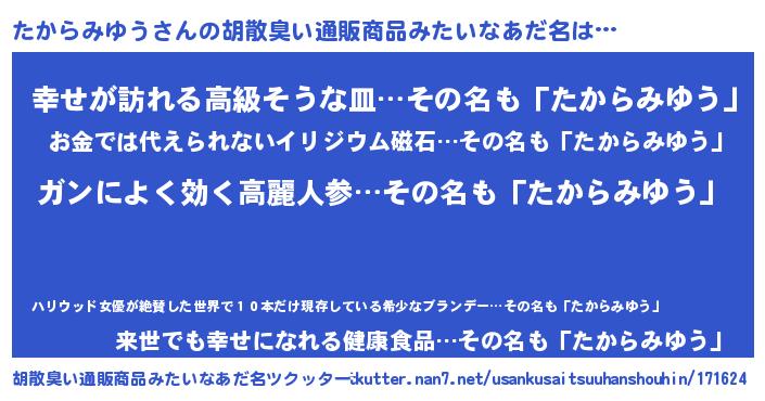 | ヘコむあだ名 | 『つくし』『たからみゆう(笑)』 |