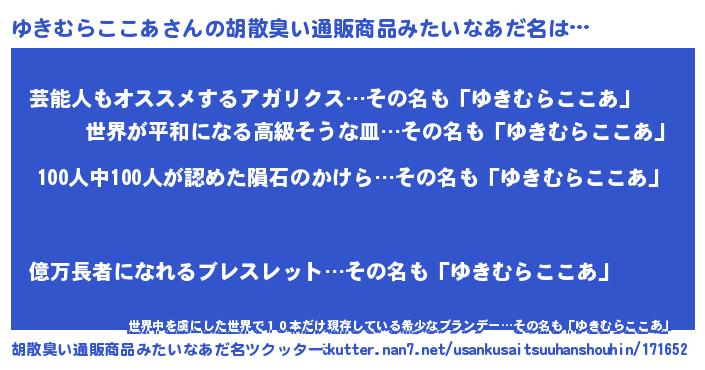 | 意味不明あだ名 | 『眠気覚ましガムゆきむらここあ味』 |