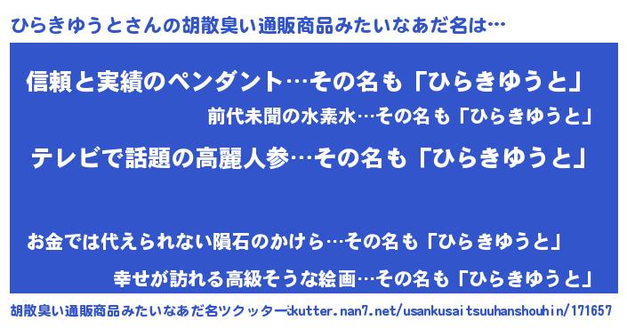 | 意味不明あだ名 | 『自称ひらきゆうと』 |