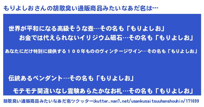 | 意味不明あだ名 | 『住所不定無職もりよしお(7歳)』 |