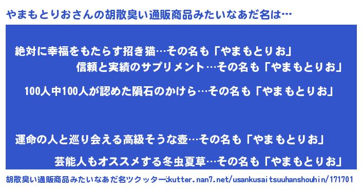 | ヘコむあだ名 | 『やまもとりお(遠い目)』『やまお』 |