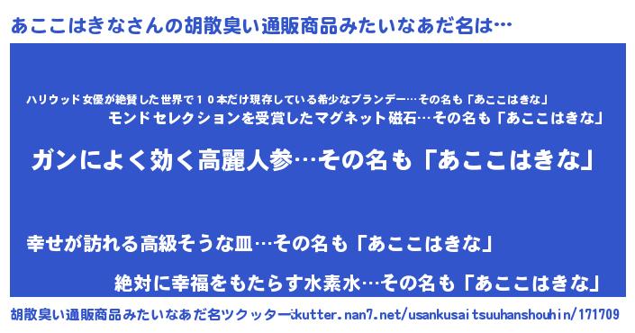 | 意味不明あだ名 | 『自称あここはきな』 |