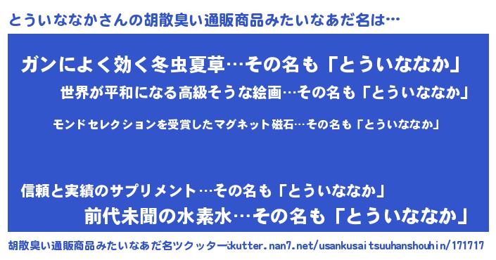 | ヘコむあだ名 | 『とういななか(小並感)』『牛乳』 |