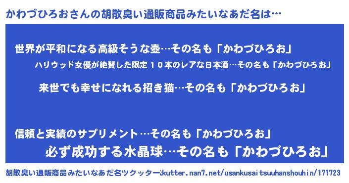 | 意味不明あだ名 | 『永久保存かわづひろお』 |