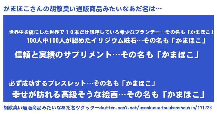 | 女子向けラノベタイトル風あだ名 | 『かまほこは平凡を望む』 |