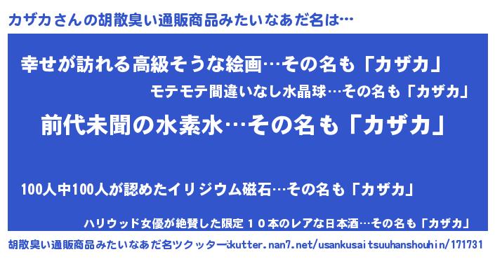 | ヒーロー風カッコイイあだ名 | 『ネオカザカ』『ウルトラカザカマン』 |