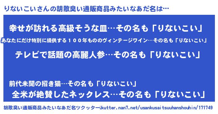| 意味不明あだ名 | 『自称りないこい』 |