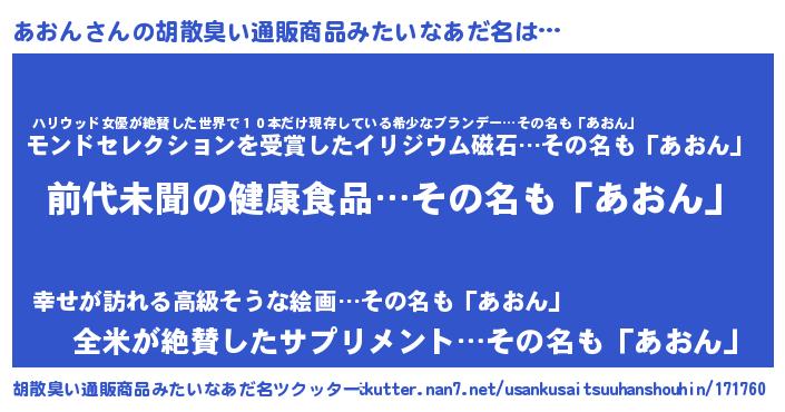 | 意味不明あだ名 | 『永久保存あおん』『あおんフォーエバー』 |