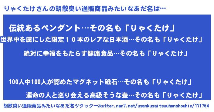 | ヘコむあだ名 | 『りゃくたけ(爆)』『りゃっぺ』 |