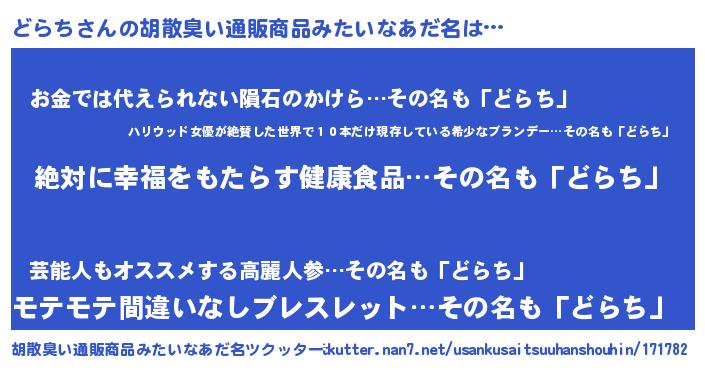 | 意味不明あだ名 | 『永久保存どらち』『ペロリンどらち』 |