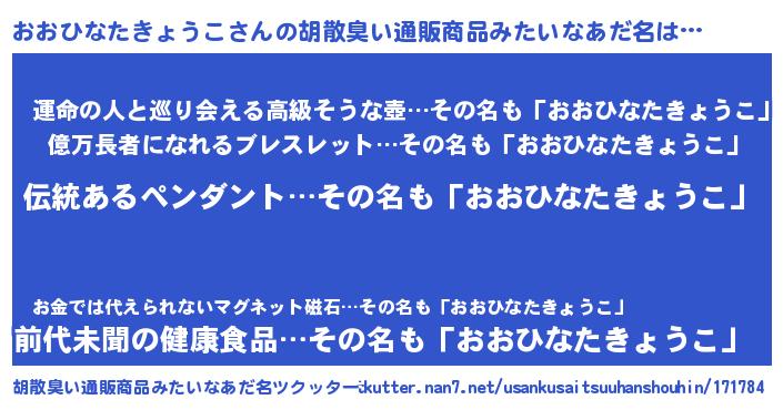 | 伝説のあだ名 | 『解き放たれた遊び人おおひなたきょうこ』 |