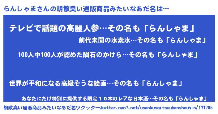 | ヘコむあだ名 | 『らんしゃま(苦笑)』『なまこ酢』 |