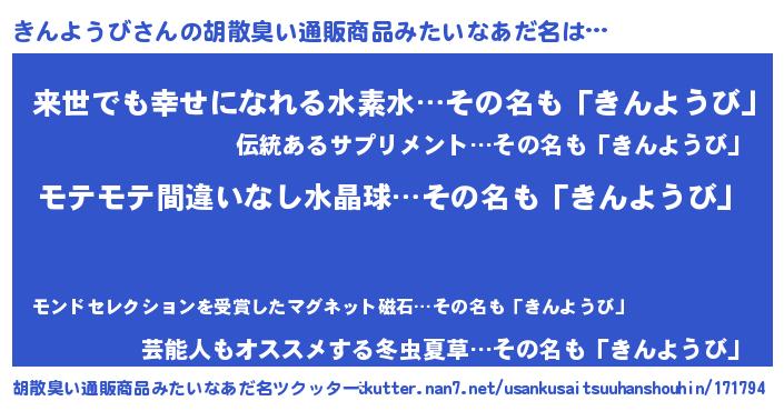 | ヘコむあだ名 | 『きんにゅー』『きんようび(爆)』 |