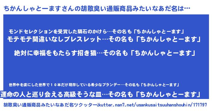 | 伝説のあだ名 | 『聞きしに勝る吟遊詩人ちかんしゃとーます』 |