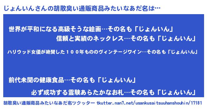 | 意味不明あだ名 | 『住所不定無職じょんいん(2歳)』 |