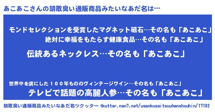 | 意味不明あだ名 | 『とにかく怪しいあこあこ』 |