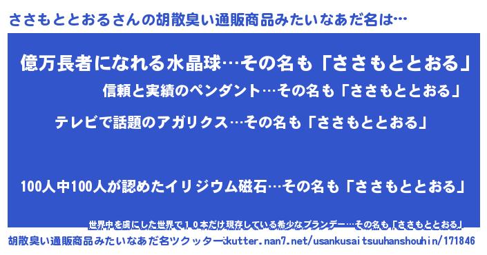 | 欧米人風あだ名 | 『ケンブリッジささもととおる』 |