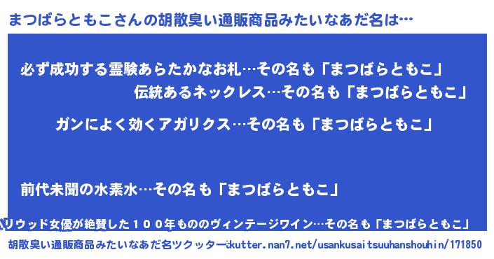 | ヘコむあだ名 | 『まつにゅー』『まつ太郎』『牛乳』 |