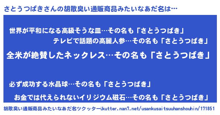| 意味不明あだ名 | 『とにかく怪しいさとうつばき』 |