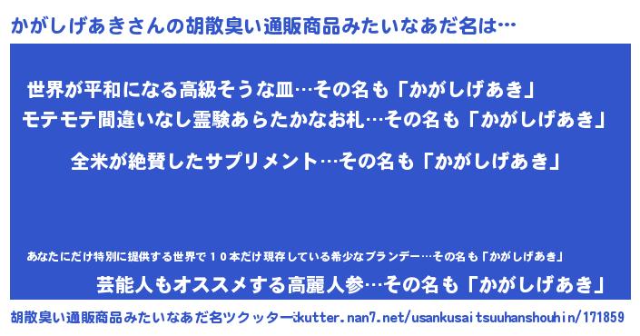 | 欧米人風あだ名 | 『トリンドルかがしげあき』 |