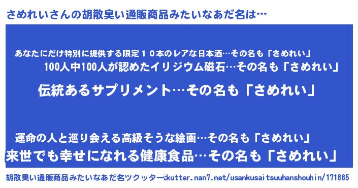 | 意味不明あだ名 | 『とにかく怪しいさめれい』 |