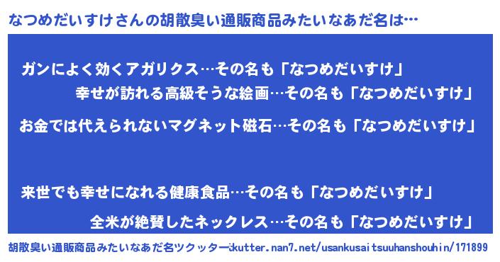 | 男性向けラノベタイトル風あだ名 | 『ノーゲーム・ノーナツメダイスケ』 |