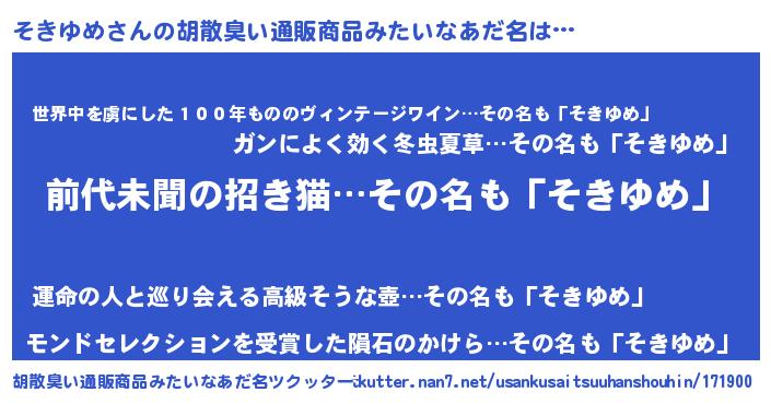 | 伝説のあだ名 | 『古文書に記された吟遊詩人そきゆめ』 |