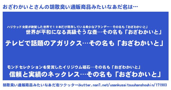 | 意味不明あだ名 | 『自称おざわかいと』 |
