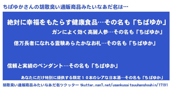 | ヘコむあだ名 | 『ちばもー』『ちばゆか(爆)』 |