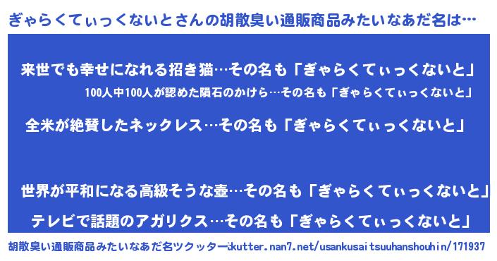 | 意味不明あだ名 | 『とにかく怪しいぎゃらくてぃっくないと』 |