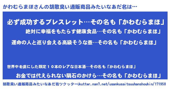 | 肩書あだ名 | 『かわむらまほ大統領』 |