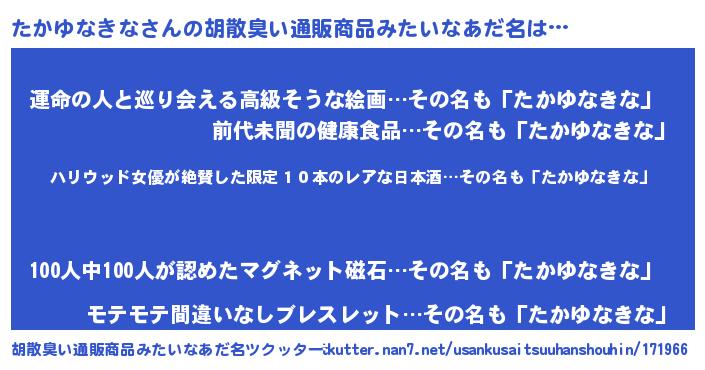 | 意味不明あだ名 | 『住所不定無職たかゆなきな(43歳)』 |