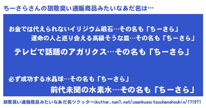 | 女子向けラノベタイトル風あだ名 | 『ちーさらアンティーク』 |
