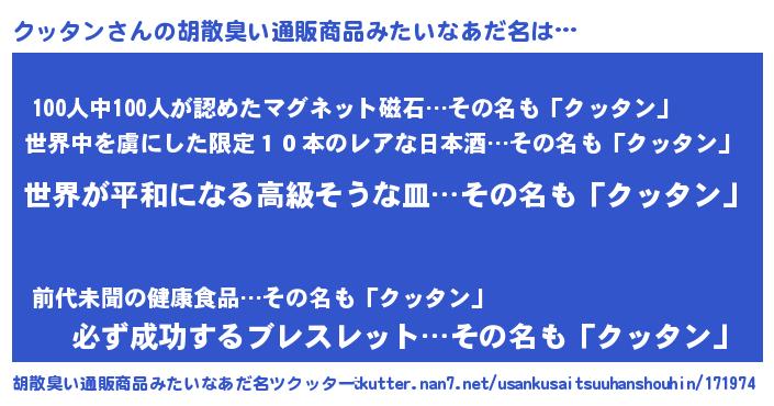 | 欧米人風あだ名 | 『アンジェラ・クッタン』 |