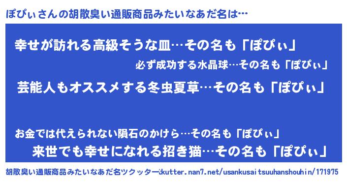 | 女子向けラノベタイトル風あだ名 | 『ぽぴぃストレイドッグス』 |