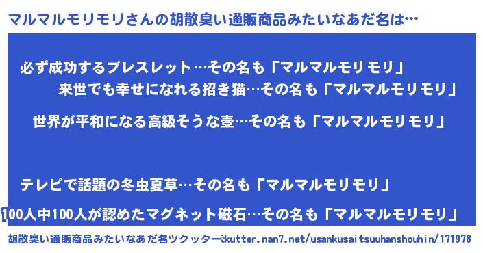 | 意味不明あだ名 | 『マルマルモリモリフォーエバー』 |